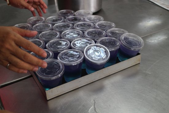 使用蝶豆花在湖田校園餐廳製作顏色很酷的美味果凍,