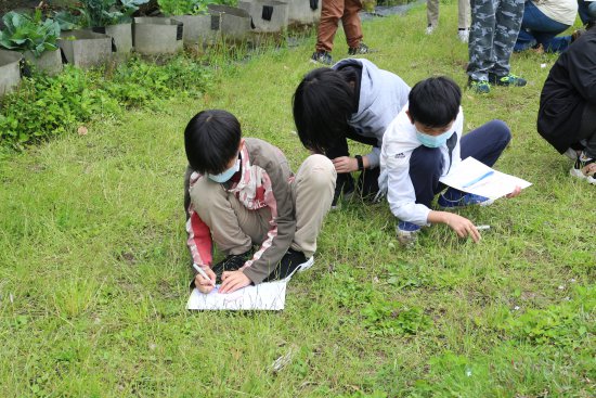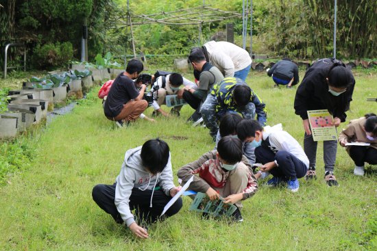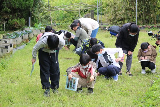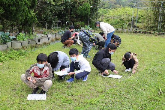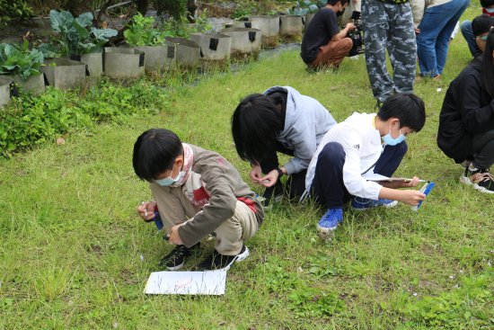 活動一開始,自然老師卓老師向學生說明水韭特徵,並強調清查水韭的注意事項之後,孩子們小心翼翼的蹲下來仔細尋找水韭的蹤跡,找到之後,插上小旗幟、標出號碼並測量其長度,過程中,正康一開始不斷直呼:「我都找不到,水韭到你裡去了?」,直到最後在水稻田的尾端,發現一株株水韭的蹤跡,開心的馬上將紀錄表填滿。少鈞運氣好多了,清查的區域剛好是比較低窪的地方,潮濕的土讓非常適合水韭的生長,一下子就找出10株以上的韭。