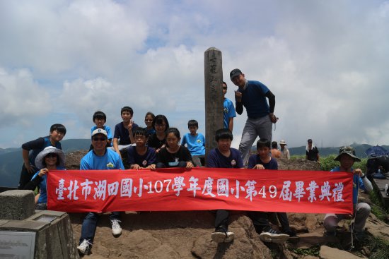 湖田國小畢業生攻七星山頂已經行之有年,今年畢業生登頂結合陽明山賞蝶活動,全校師生從冷水坑停車場開始出發,1-4年級走冷苗步道沿途賞蝶到七星公園,5.6年級學生從夢幻湖-大屯山氣象站開始攻七星山東峰及主峰。