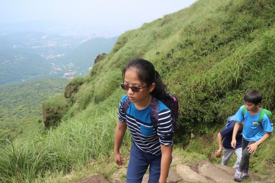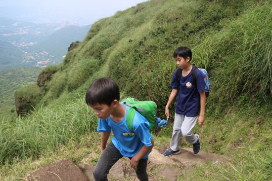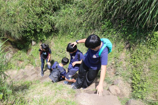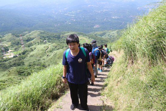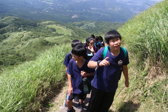 活動開始,除了沿途除了看到滿山滿谷的青斑蝶之外,更看到山下淡水河、基隆河流域交會以及大台北地區的美景,卿祐老師沿途對孩子們解說看到的動植物,有鋪地杜鵑、水灸、以及罕見的生態植物,海玲老師跟淑娟老師走起來有點吃力,反而是孩子們一路幫老師加油打氣,登上七星山頂後,由林映杜校長為孩子們頒發攻頂證書,完成畢業生系列活動-七星山極限挑戰活動。