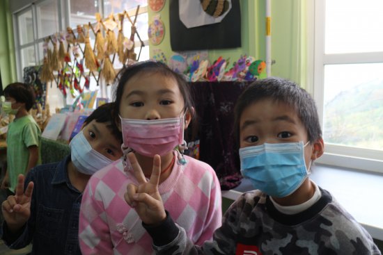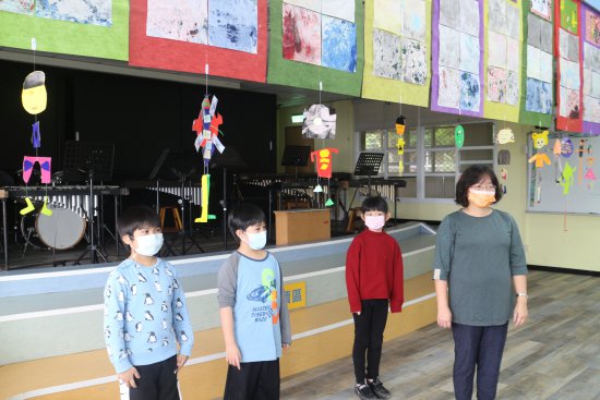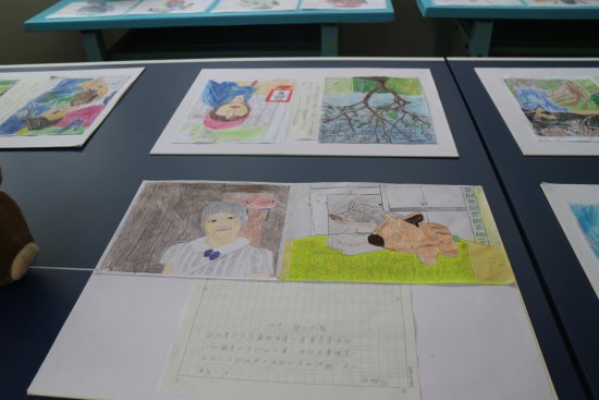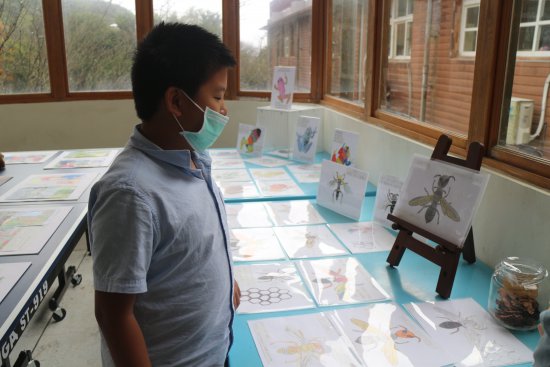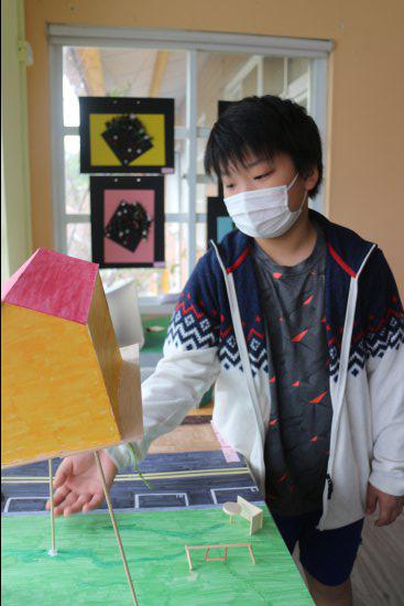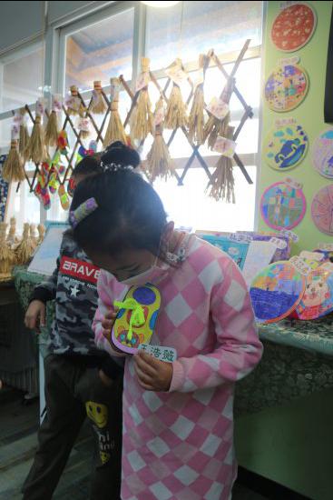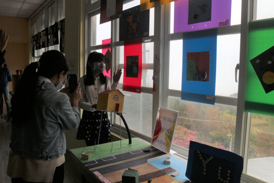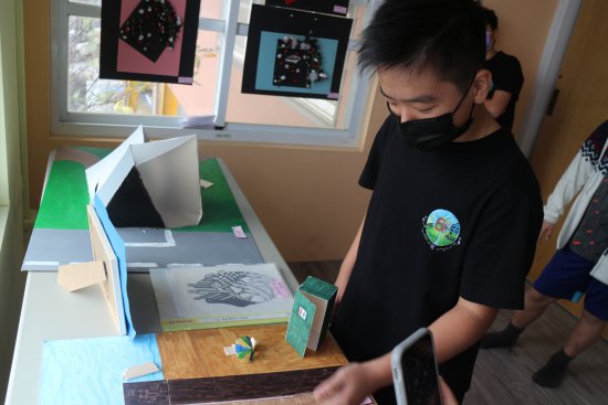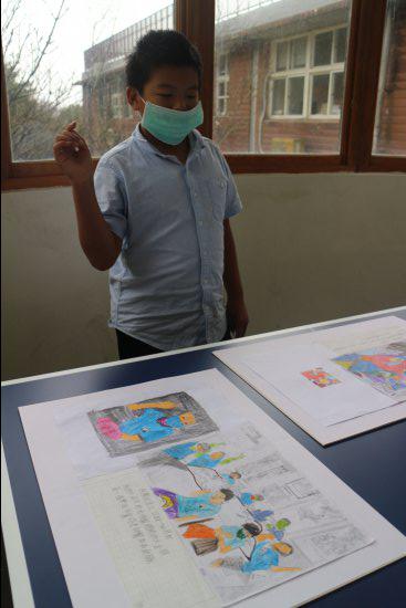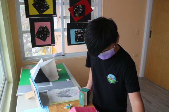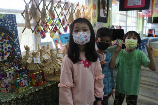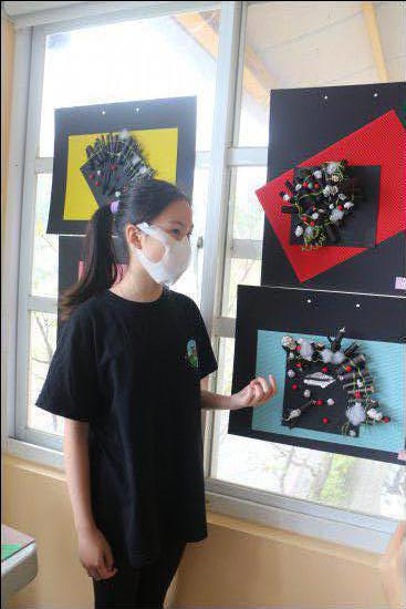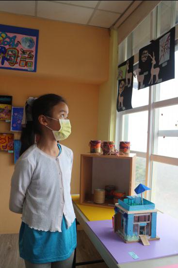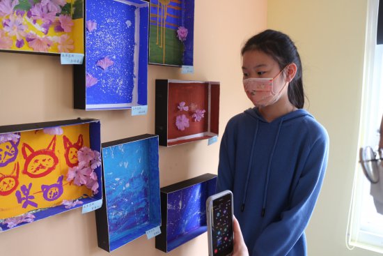 小朋友對藝術作品侃侃而談,敘說作品的故事。(採線上直播)
