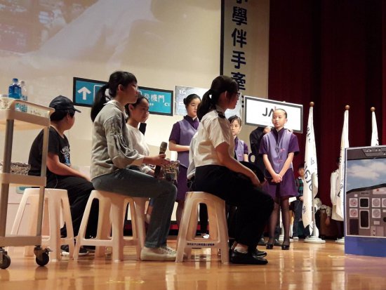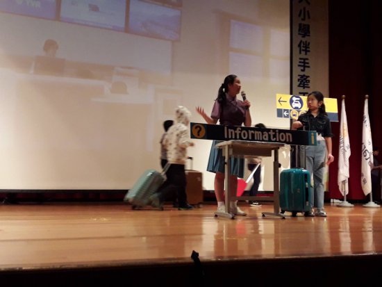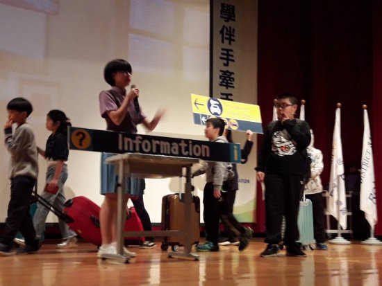 透過這樣公開展演「通往機場的國度之旅」,孩子們說,我們再也不怕上臺說話了。看來,老師們用心良苦奏效了!!
