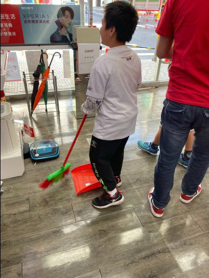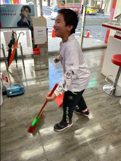 日前,透過家長的協助與安排,麗霜老師又帶著孩子到天母,體驗「一日店員」的生活,學生們必須在手機店裡,體驗身為門市店員的工作,工作內容有,門市店面清潔打掃、招呼客人、友善引導入座、幫忙客人列出迎接帳單、與客人確認電話末三碼後再幫忙結帳、幫忙客人清潔手機、歡送客人離開等工作,上門的客人很開心的接受小小店員們的服務,直說:「這些小小店員服務很親切,笑容很迷人喔!」老師只是在一旁觀察記錄,評量孩子是否已經學會生活智慧王的素養,課程融入於生活中,透過體驗生活學到真正的本事。