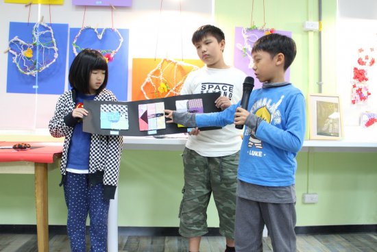 臺北市湖田實驗國民小學「田園藝想家」主題課程-視覺藝術映眼簾美展,日前在學校「社區共讀站」展出,並於彈性課時間進行全校動態發表,小朋友們各個對自己的美術作品侃侃而談,透過分享與欣賞培養藝術創作能力,也藉由動態發表培養孩子成為「書坊導覽員」。