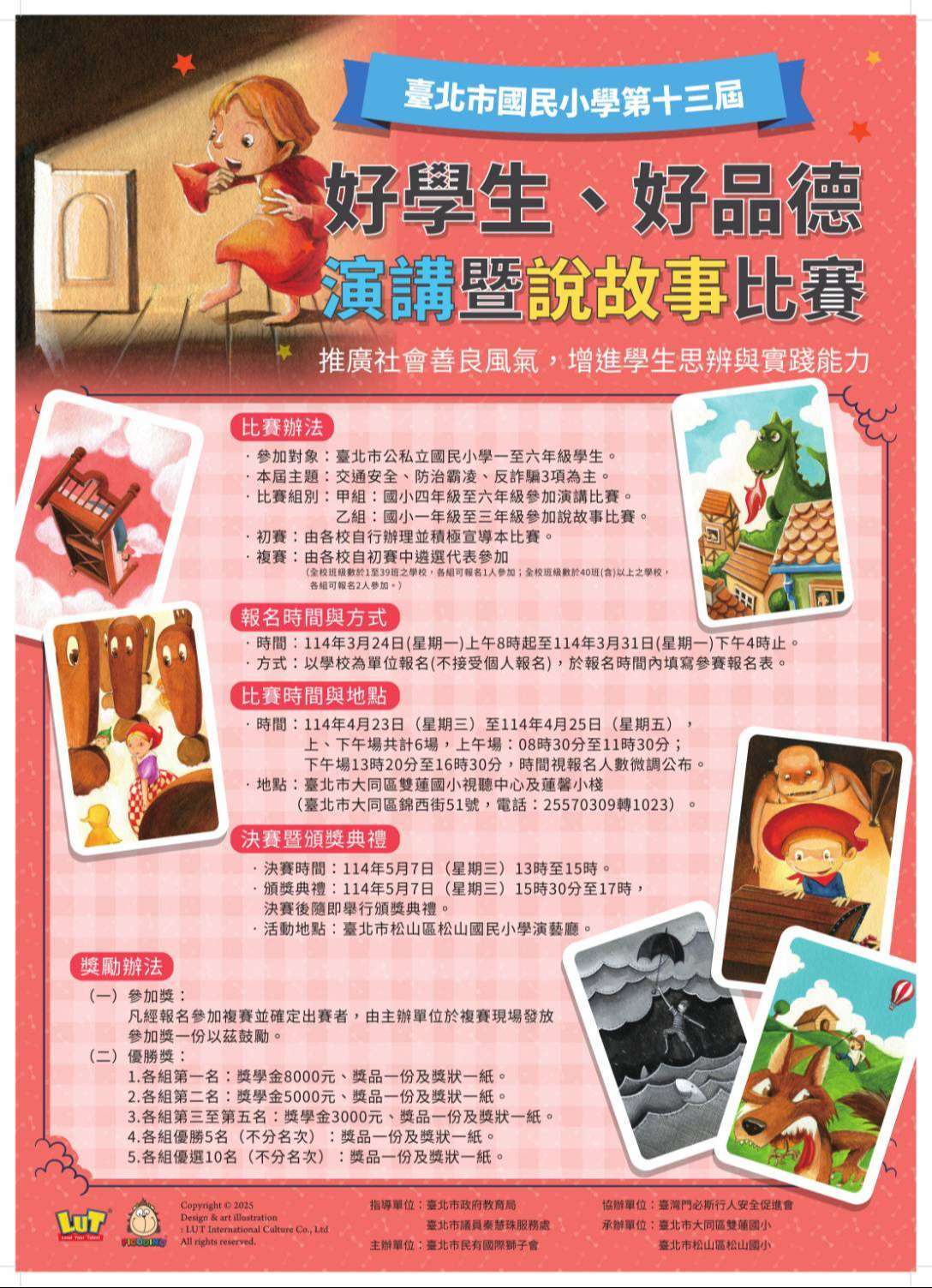(2)乙組為說故事比賽,參加對象為國小一年級至三年級學生。