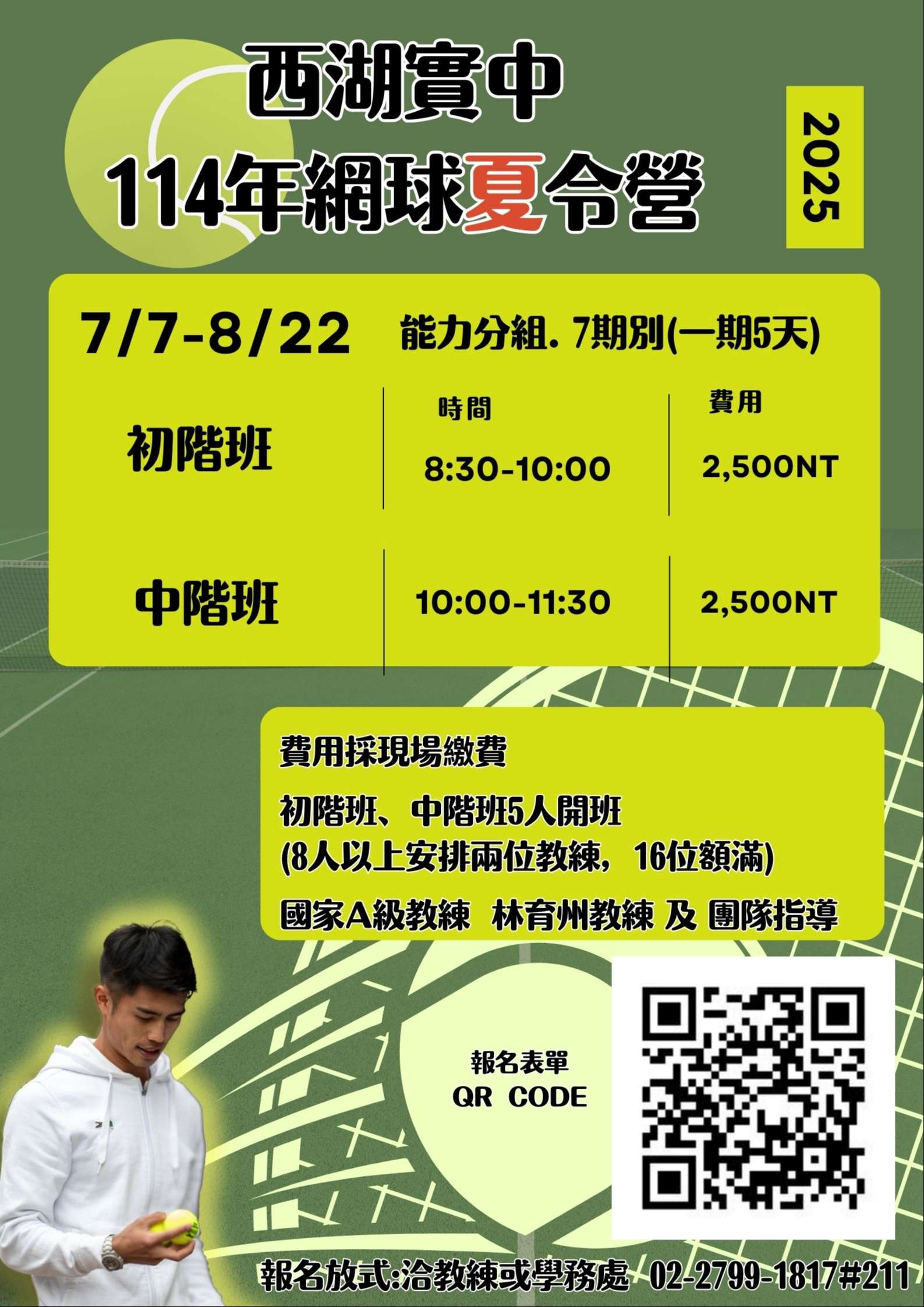 (二)參加對象:對網球有興趣之國小、國中七、八年級學 生。
