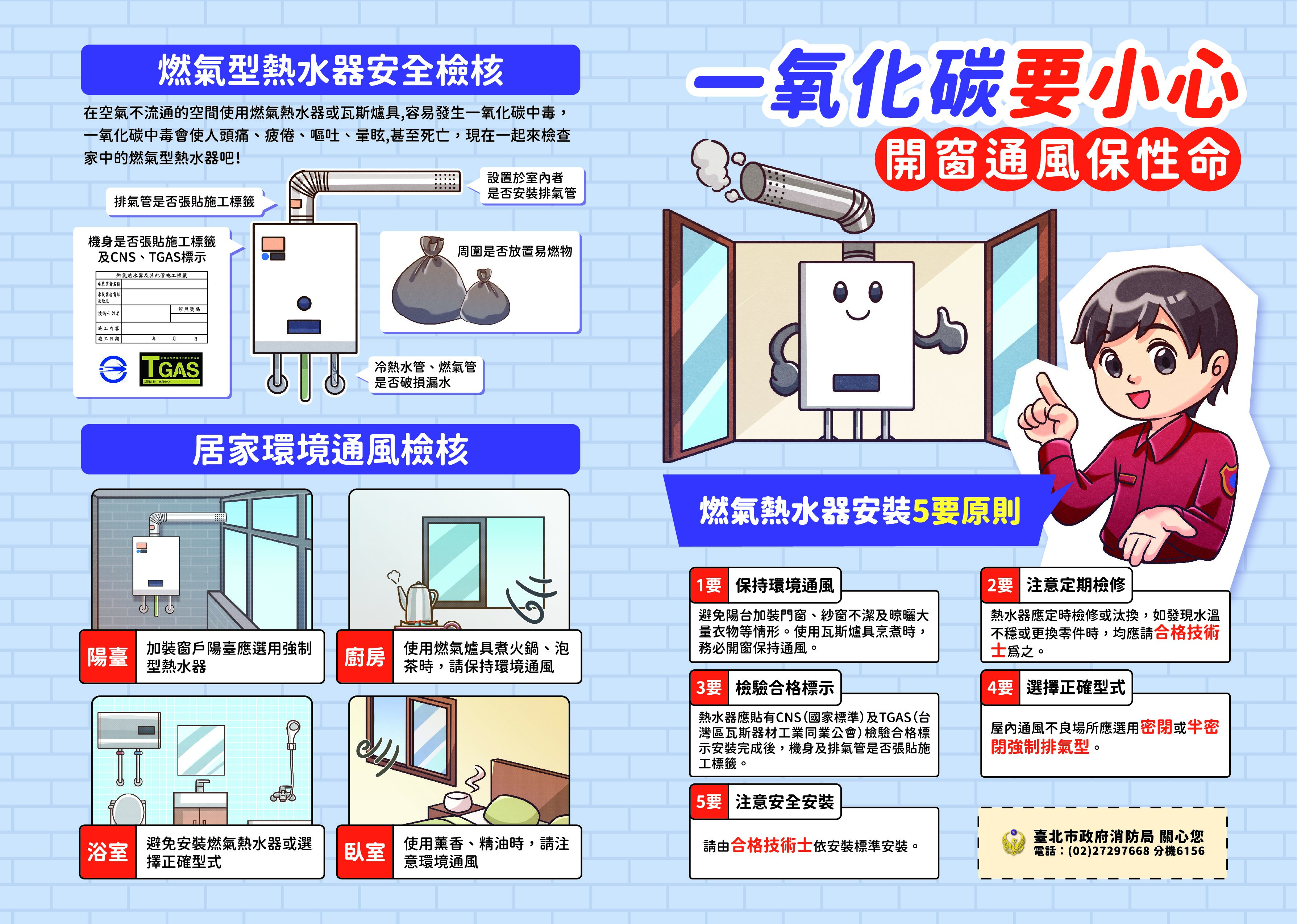 天冷用火保通風,闔家平安過好冬;正確安裝熱水器,居家安全有保障。