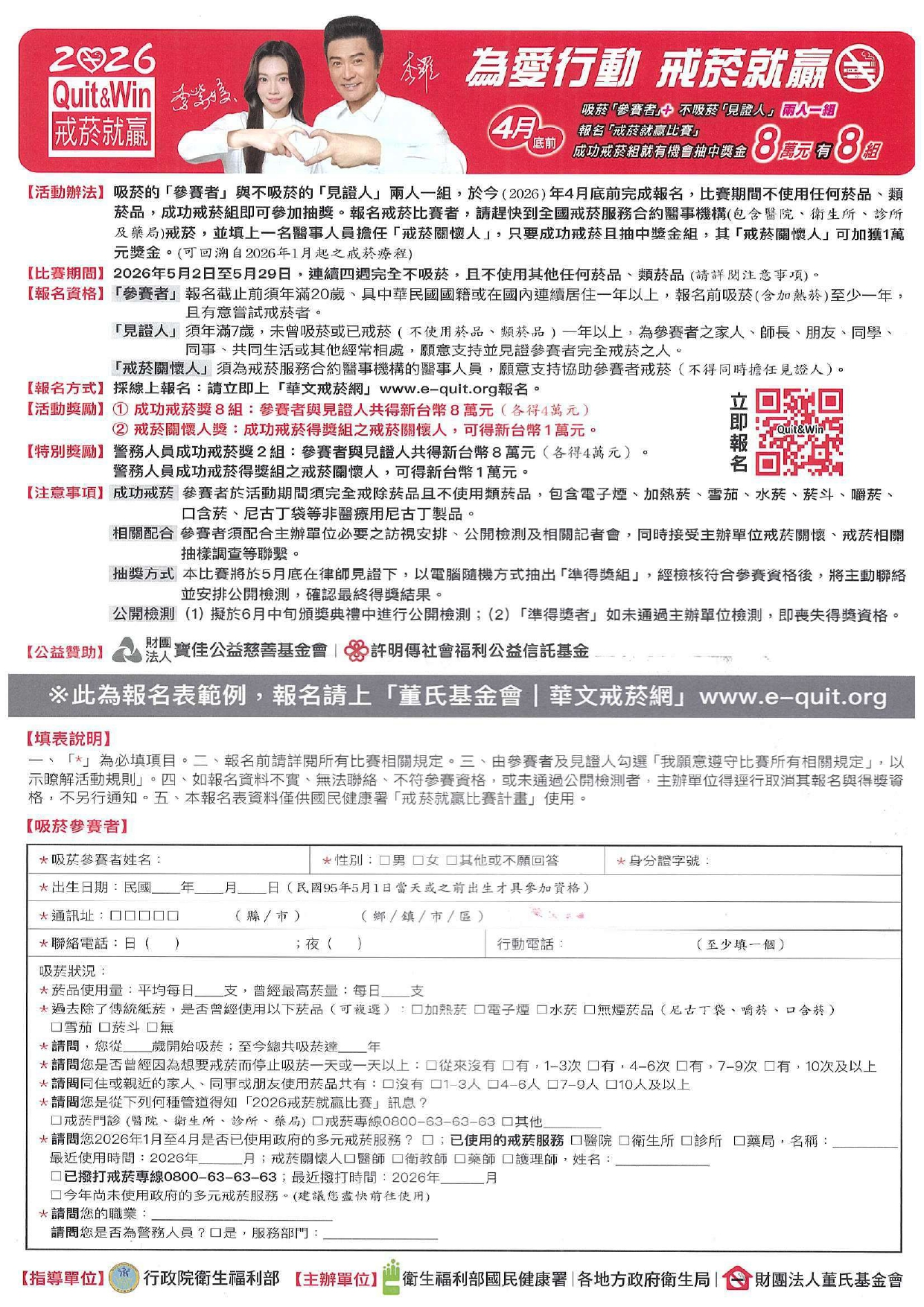 二、「2026戒菸就贏比賽」活動相關資訊(簡介如附件1),摘 要說明如下:
