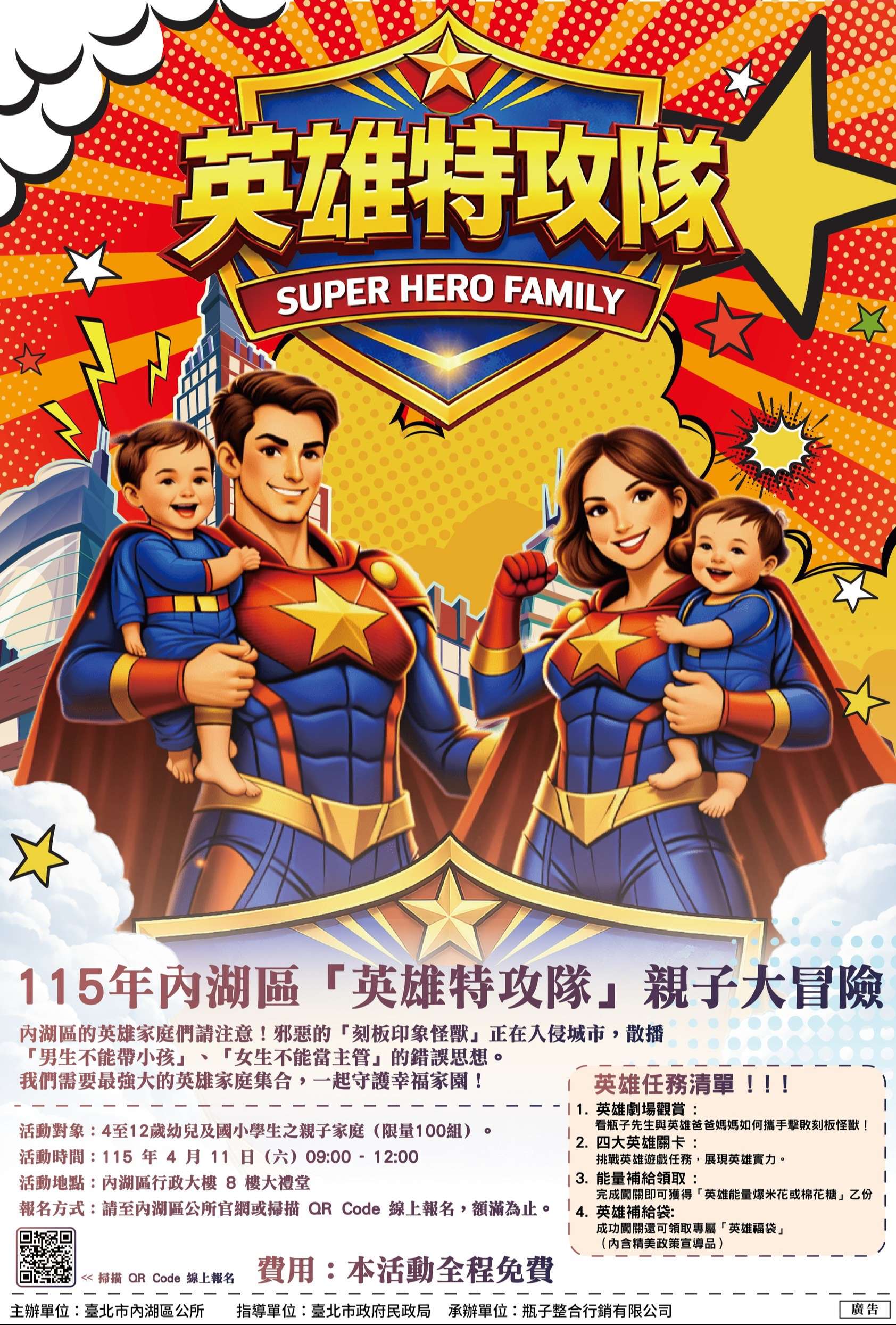 內湖英雄特攻隊徵召中!115年4月11日一起擊敗 刻板印象怪獸。